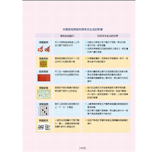 例如在書桌上找出被課本遮住的鉛筆、辨識及抄寫黑板上部分被擦掉的字。