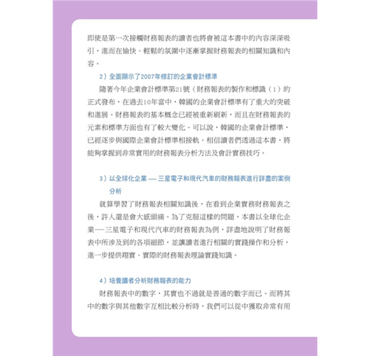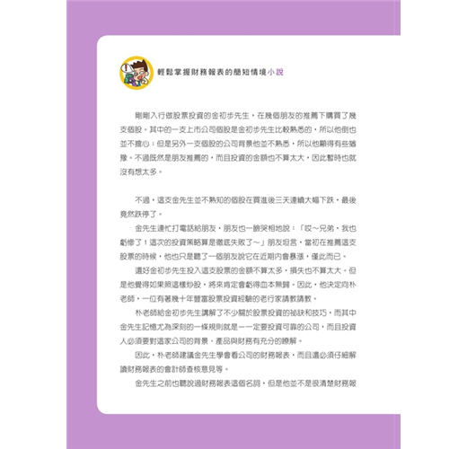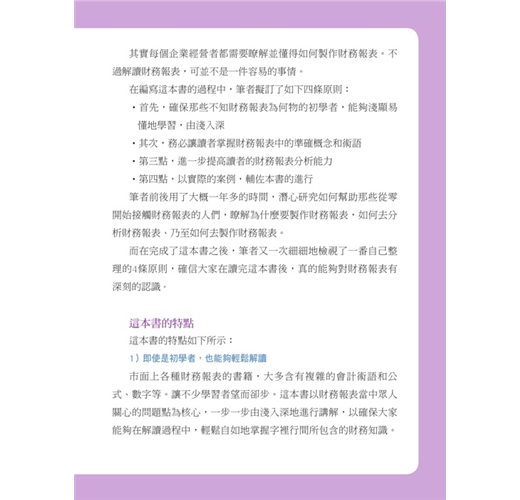 投資高手一定要懂財報,公司基本面是影響公司股價趨勢的最重要指標,唯有透過財務報表,才能搞懂公司股價的未來走勢。這是一本簡單易懂的財務報表指南,即使是對於財務報表一無所知的讀者,也能夠輕易了解到財務報表的原理,和對於公司經營上所起的作用。