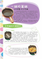 在試做與研發的過程中更是驚喜不斷,我到處告訴親朋好友這項破天荒的好消息,同時也慶幸自己能找到品質高、售價合理的萬能平底鍋。在多次與出版社協商討論之後,我們終於選定了本書的菜單,全書分成兩大篇主題:「煎烙篇」和「烤蒸煮篇」。「煎烙篇」中我融入了有趣的異國菜色,包括日本、韓國和泰國的點心,例如:韓式煎餅、仙貝和泰式椰子餅;同時也加入了有健康取向的點心種類,例如蕎麥薄餅卷、紫地瓜餅、香椿厚鍋餅和豆渣鬆餅等,每一道點心都非常容易製作而且又好吃。「烤蒸煮篇」當中同樣地也將異國點心加入其中,例如吃過以後人人稱讚的馬來西亞蜂巢蛋糕、越南綠豆椰子糕、日式豆沙包和墨西哥香辣雞肉捲餅,具有養生概念的則是五榖米司康、紅糖淮山瑪芬、豆奶雜糧麵包、紅麴核桃麵包和茯苓蒸糕等。這都是為了提供讀者更新穎的「新食感」,所以我們苦心搜尋世界各地的著名點心,期望讀者在下廚做點心的同時,能變換出令親友讚嘆不已的視覺及味覺新享受。