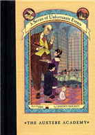 Gr. 4-6. The Beaudelaire orphans enroll as students at Prufrock Academy in the fifth Series of Unfortunate Events book. The Academy, run by nasty, mimicking Vice Principal Nero, is shaped like a large tombstone, and the perpetually unlucky Violet, Klaus, and Sunny must stay in a tin shack with biting crabs, dripping tan fungus, and green walls decorated with tiny green hearts. Series followers will be keeping their eye out for evil Count Olaf in one of his disguises, and the author doesn't disappoint. Snicket once again uses comical word definitions in the text ("the phrase 'impressionable age' here means 'ten and eight years old, respectively'), and just when things seem a little too predictable, Count Olaf makes off with the Beaudelaire's new friends, the Quagmire orphans, so setting things up for book six. Kids not familiar with the previous books will also enjoy this. REVWR