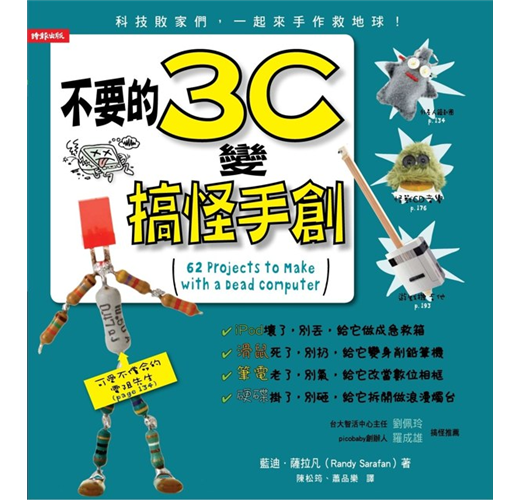 「我一直很期待有人跟我們一樣,共同打造這個有趣的世界。在這本書中我看到了許多好玩與有趣的作品,或許你會覺得很難或不可思議,電子零件怎麼可能變成這樣,但請大家拋開既有的印象,不要以太嚴肅與太專業的眼光,來看待這本書。因為我們就是要顛覆大家的想像,以搞怪的手法,讓大家能重視3C產品帶給我們土地的傷害,並加入我們的行列,讓垃圾也能變黃金。」