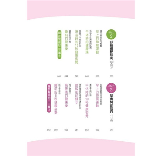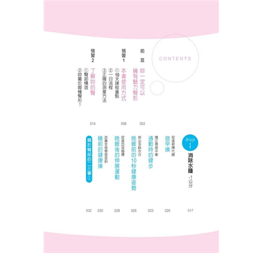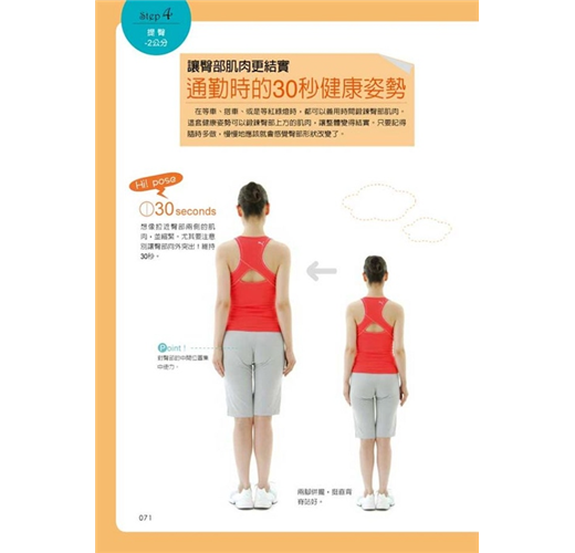 不論是久坐、缺乏運動導致臀部下垂,或姿勢不正確、骨盆歪斜導致臀部扁平,只要利用書中6個步驟幫你調整骨盆、平衡肌肉、消除水腫、提臀、甩掉大腿贅肉,短短10天就能輕鬆瘦下5公分,擁有美麗翹臀。