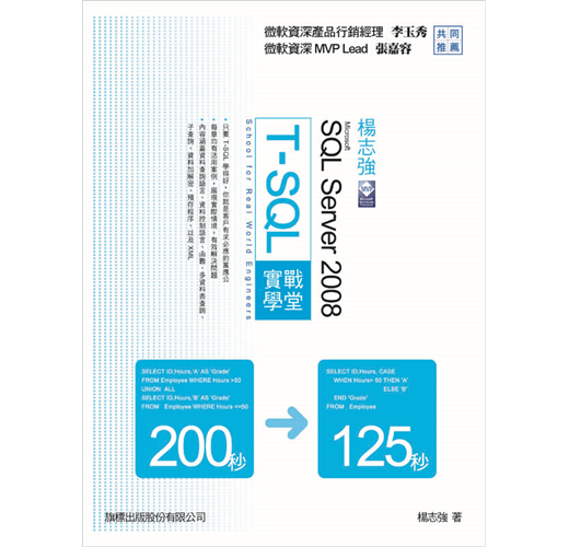 不論是MIS或是資料庫應用程式的開發人員, 與SQL Server接觸最頻繁的方式就是透過T-SQL語言, 許多時候雖然可以取得正確的結果, 但是執行的效率卻很差, 或是無法查出自己想要的資料, 往往就是因為不瞭解各種T-SQL敘述背後的運作原理所導致, 因此若要善用T-SQL, 深入的瞭解各個T-SQL敘述的特性與效用就是很重要的事。