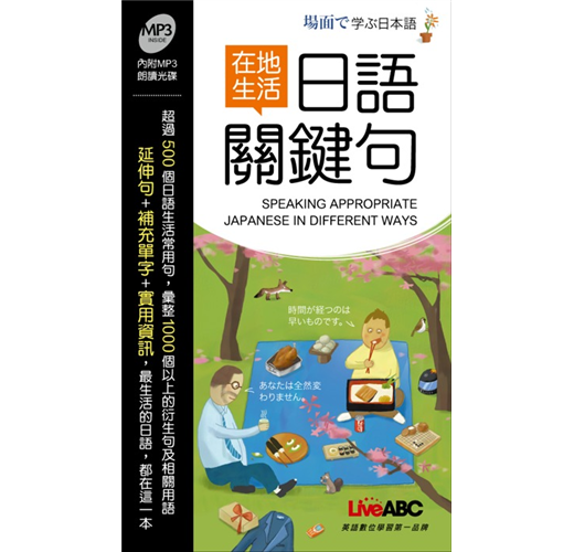 本書為讀者特別匯整了9大主題、並加以詳細分類成24種前往日本一定會碰到的狀況。書中精挑細選500個以上連當地日本人都覺得好用的實用句,讓讀者無論是赴日觀光、出差、遊學、或是即將譜出一段異國戀曲的情況下,都能找到臨時需要的一句話,而不會再有「話到用時方恨少」的窘況。