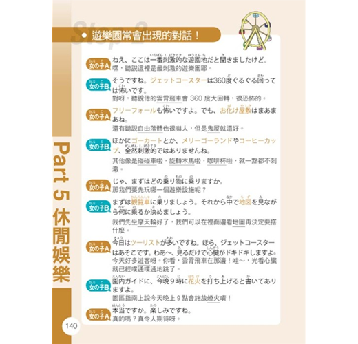 為了讓學習者更清楚在各個場景中日本人有可能會出現什麼樣的對話內容,在《從日本人的生活學單字》一書中的每個場景都會收錄一篇情境會話,利用學過的單字編寫而成,以生動活潑的角色扮演呈現,也以最真實的交談內容讓學習者更貼近日本人的生活,在背單字的同時,能更了解日本人的語言邏輯以及運用方式,輕輕鬆鬆就讓自己的會話能力大躍進!