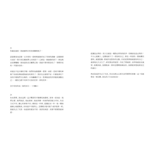 目的始終是模糊的,像是冰塊一樣的東西啊。然而畢竟朝著某處繼續。不知道很多年很多年以後,世界還在嗎? 表象背後真有什麼固著嗎? 那些生活裡不免是困頓的、奮力或徒勞的,在書寫或描繪的空隙,有了小小的光亮。那樣既專注且...