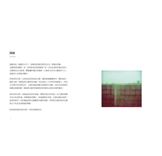 「一年過了,我才理解那個時候,你是在的。一顆虔誠的初心只認得當下,時間和空間是無所謂的,它們必須退場。生命給予的,可以盡量地揮霍。」
