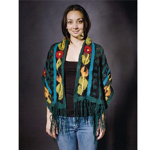 四年前小小的一條圍巾,我需要八、九個小時的艱苦奮戰,如今,只需要短短時間就可以迅速掌握羊毛與其他纖維氈化的狀態,我想我是試出一些心得了!如果羊毛的品種與纖維直徑都會影響羊毛與其他織物竄穿織目的能力與氈合的效果,那麼,其他纖維的織法與種類也同樣會是影響因素,就是因為變數多,所以會產生許多不同氈合效果與不同的質感的變化。