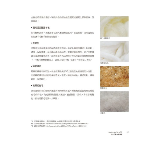 筆者很高興能為此書其寫序,此書出版,不只昭告台灣「羊毛氈」工藝發展新的境界,對喜愛「羊毛氈」工藝的同好而言,亦是一大福音。