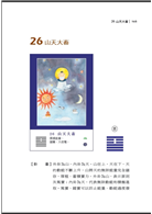 又如某乙為女性,剛因先生外遇而離婚。回復單身後她鎮日感歎自己的不幸與對方造成的傷害,終日抑鬱寡歡。她想瞭解如何調整心態才能走出痛苦?於是以此問題占得二十六卦「山天大畜」(圖卡請參閱本書)。