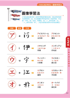 把外表相似的片假名分門別類以圖像呈現,一張圖就可以涵蓋多個片假名,不