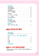 獨家收錄的「N1-N5」必考片假名,可以成為你在看完本書後的隨手教材,可從程度最簡單的N5開始背誦,並循序漸進往較難的程度邁進。