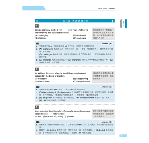 每一章末了均附仿真試題,全書共計四百五十七題,全由賴世雄老師親自模擬編寫,百分百貼近真題考點。每一道仿真試題皆附中文翻譯及詳解,方便讀者自我評量及自修。