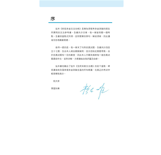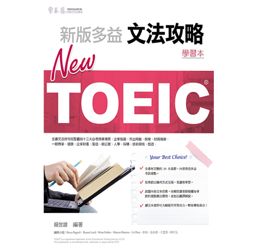 這本《新版多益文法攻略》是針對多益測驗的文法參考書。全書共分20章,每一章皆突顯一個考點。全書採重點式列項,並附簡單的例句,解說清晰,讀者很容易融會貫通。