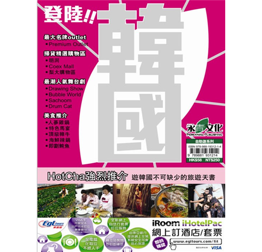 4:買!行盡首爾多個人氣購物區登陸韓國帶你玩盡韓國最新旅遊熱點,濟州島全新水療、釜山最具人氣魚市場、慶州新羅古積、全羅南道列車遊、京畿道滑雪熱點、驪州最大名牌Outlet、江原道體驗之旅、仁川及首爾瘋狂食玩買等。人蔘雞鍋、頂級韓牛及地道辣鍋等多款人氣韓國美食推介;最潮藝術全新演繹,韓國人氣舞台劇。詳盡首爾地鐵沿線遊,帶你走到各個掃貨精選購物區,更可前往多個旅遊景點,是旅遊韓國不可缺少的旅遊天書。