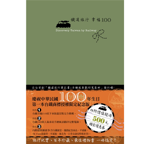 2.精美筆記書:是一本兼具記錄及收藏價值的筆記書,內容包含台鐵營運中219站古今站名對照,各站鐵道史蹟及景點、名物介紹,100個幸福車站縮小版的風景戳印、鐵道歲時及鐵道小知識…等精采內容,最特別是內附台鐵票券便當及商品的優惠折價券,附加價值提升。筆記書內頁則採用日本進口紙精印,質地優、手感佳,旅行時輕巧好攜帶,是集章書寫最佳良伴,並具永久保存價值。
