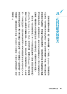 書中所提出的種種生活態度,就是要讓人活時有意義、讓良善的事情有所循環、讓生命沒有白走一遭,就如內容所言「...