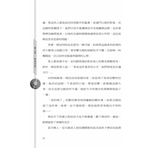 晴信依然閉著眼,他的心狂跳不已。對他來說,這的確是個心動的建議。可他一想起了父親信虎的淫威,仍不免心有餘悸。