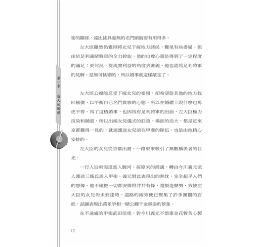 寒暄一陣,晴信暗想今天的事多少有些奇怪,對方似乎早有預謀地將自己引入了某個圈套之中。但他內心深處,似乎又在渴望發生什麽意外的事。他閉上眼睛。
