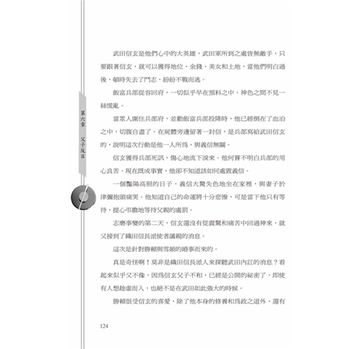 其實,晴信同時也在想另一種可能。如果將這個倉科莊裏的四十騎勇士收歸已用,要突擊父親的城館似乎不難。目前唯一的難題是:自己如何克服背倫違道的心理。