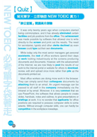 每個領域的單字前都有模擬測驗題型,開始背單字前先做題目,check 自己對該主題單字的熟悉程度,不僅可以認識多益題型,更可以知道自己對此一領域的單字熟悉度,調配記憶各領域單字的優先順序,在時間的分配上也會更精確!沒有把握的單字馬上翻到該頁,先背了再說,《NEW TOEIC必考單字袋著走》讓你事半功倍!