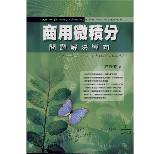 本書的目標在介紹如何應用微積分來解決商學與管理領域的各種問題。內容設計針對大學與技術學院之企業管理、財務金融、經濟、會計、資訊管理、財政稅務、流通行銷等商學,或管理領域的學生學習微積分而編寫,其目的在希望商管系科的學生能熟悉如何利用微積分解決實際的商業問題,作為未來學習其他專業課程中,有關數量方法的基礎。