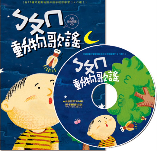 念、唱輕快的ㄅㄆㄇ動物歌謠,有37個可愛的動物陪伴孩子學習ㄅㄆㄇ,活潑有趣的插圖,配合注音符號押韻的歌詞,讓孩子每天聽正音老師引領教唱的歌謠CD,自然而然就能朗朗上口,輕鬆學會注音符號、拼音和識字。