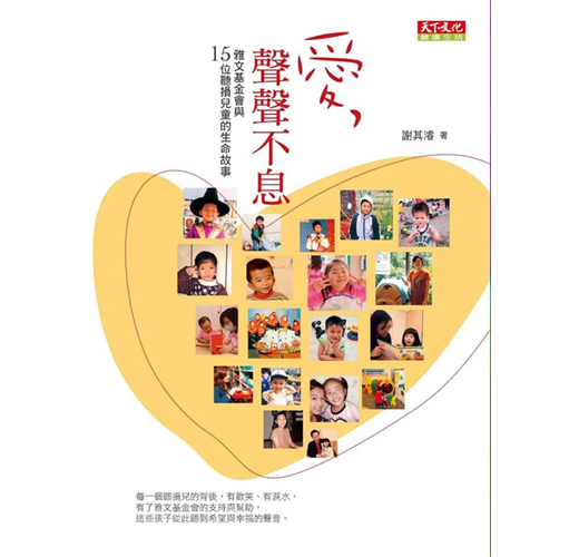 15年來,雅文基金會已經幫助超過2500名聽損兒走出無聲的世界,本書記錄了15位聽損兒暨家庭永不放棄的美麗奇蹟。為了讓孩子走出寂靜,不會從此只能靠手語與人溝通,每個小朋友背後,都有勇不放棄的家人在支持著,這份愛,令人感動。