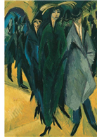 凱爾希納是一位天生的放蕩藝術家,作畫題材來自生活的兩個面相:一是畫室生活,另一則為都市大街所見的景象。他曾說:「我的畫幅是譬喻,不是模仿品。形式與色彩不是自身美,而是那些通過心靈的意志創造出來的才是美。那是一種深秘的東西,它存在於人與物、色彩與畫框的背後,它把一切重新和生命、感性的形象聯結起來,這才是美――我所尋找的美。」
