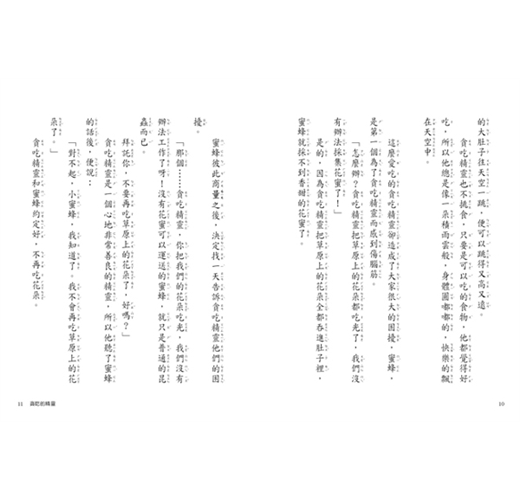 「那個……貪吃精靈,你把我們的花朵吃光,我們沒有辦法工作了呀!沒有花蜜可以運送的蜜蜂,就只是普通的昆蟲而已。拜託你,不要再吃草原上的花朵了,好嗎?」