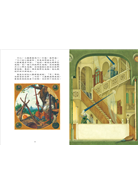 除了小圓餅之外,在P16~17,插畫家還讓「狼」穿上戰甲,手持長劍,像戰士般的威風;而P10~11畫中出現的農夫與農婦,無論穿著、打扮或動作的描繪,都呈現出樸實的英國鄉村風格。在最後的結局裡,插畫家把狐狸計誘小圓餅的過程,表現得又機靈又巧妙哪...