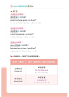 本書以最標準的「羅馬拼音」與最貼心的「注音符號」,協助您輕輕鬆鬆唸出一口流利的標準韓語,萬一真的韓語還是無法溝通時,別擔心還有世界的共通語言「英文」挺你度過難關。