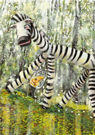 在夏日河岸邊,斑馬花花正被一片光亮亮的林蔭水波吸引住,覺得一切安靜、美麗極了!