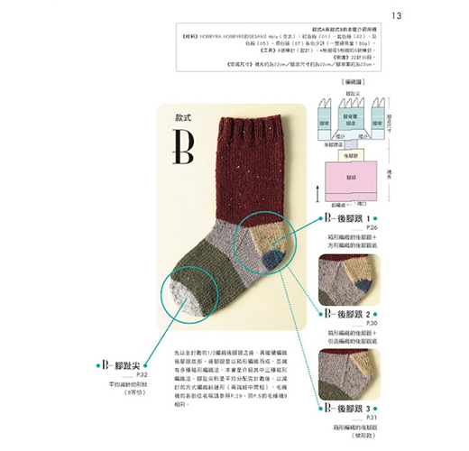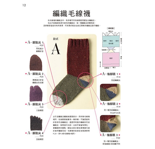 並附有4款腳趾尖編織與4款後腳跟編織詳細教學