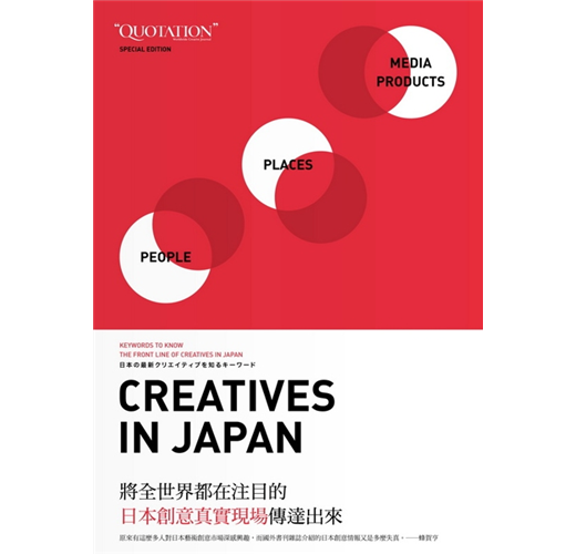 「將全世界都在關注的日本創意現場真實地傳達」本書以此為目標,秉持《Quotation‧引號》一貫的敏銳嗅覺,不論知名度,挑選當今最受矚目的日本藝術家、創意空間、媒體,一一介紹給讀者。