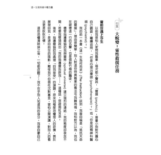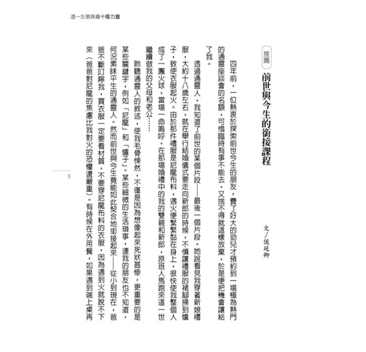 歐普拉靈魂系列靈性導師安士利.麥克勞的前著作《這一生為何而來》彷彿是本人生使用手冊,而《這一生要具備的十種力量》則像是意識蛻變指南,詳述前世創痛在今生造成的不良後遺症,如何療癒?療癒之後的你會如何脫胎換骨?