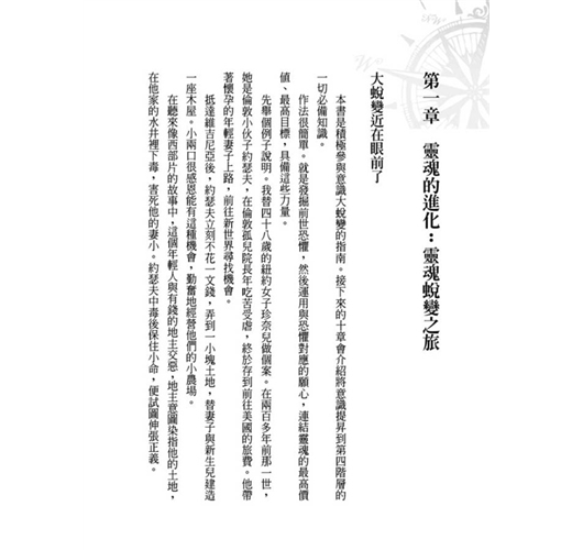 2.幫助讀者培養十種蛻變力量:平等、合作、尊重、正義、知識、諒解、真相、自由、和平、愛。附十種靈性行為與二十個對應練習。