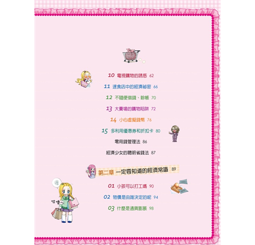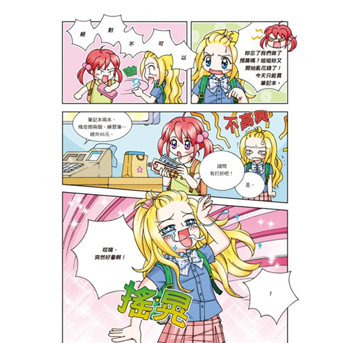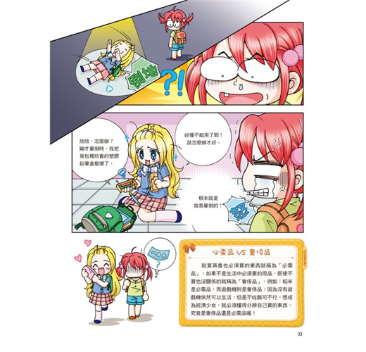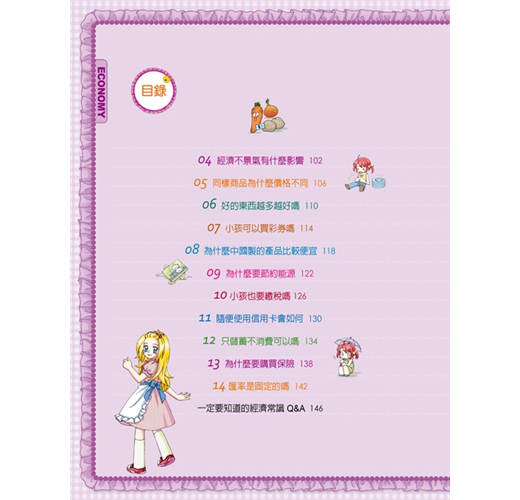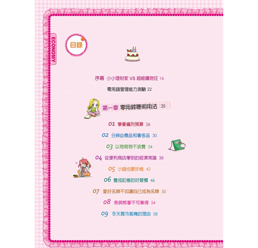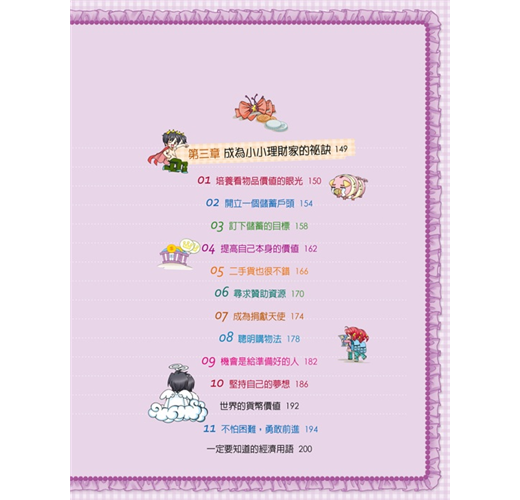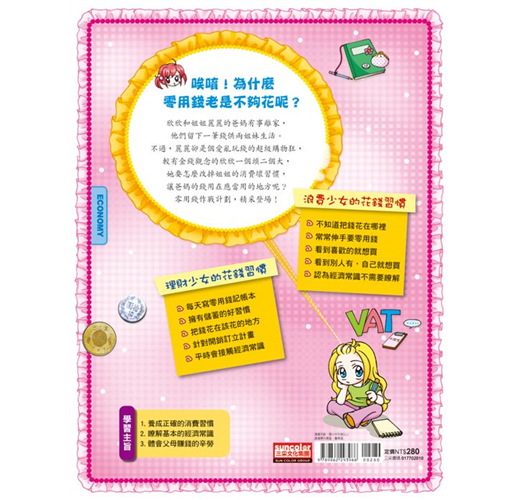 另外,你覺得物質生活富裕的富翁,和懷有夢想並懂得分享的人,誰才是真正富有的呢?書裡頭有錢的小富婆妃妃和小氣鬼小熙會用有趣的故事,幫助你去思考這些問題喔!開心閱讀這本書時,你不但可以學會如何善用零用錢,變身像欣欣一樣的小小理財家,還能累積生活中的經濟常識,掌握經濟活動,為未來建構一個美好的經濟生活喔!