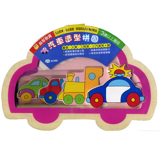 汽車造形拼圖內含一個樣式可愛的汽車外形木盒和警車等四種交通工具拼圖,是值得您選擇的益智遊戲。