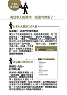 根據每一種服務類別,將服務現場可能會遇到的狀況,按照「服務流程」編排,收錄簡單、扼要的日文語句。句型或文法看似簡單,卻是生活表達、延伸會話的基本元素!涵蓋主題包括了「接待、受理點餐、結帳、電話應對、抱怨處理、危機處理、介紹景點、客房服務、機場日語……」等,內容豐富多元。即使實際服務日本人時臨時遇到狀況,也能馬上速查,並用流利的日語應變,提供顧客最及時的協助與符合日式禮儀的專業服務。