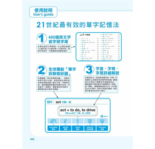 全書收錄英文學習者一生必學的基礎100個字首+250個字根+100個字