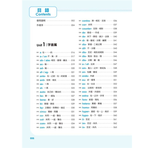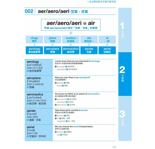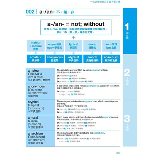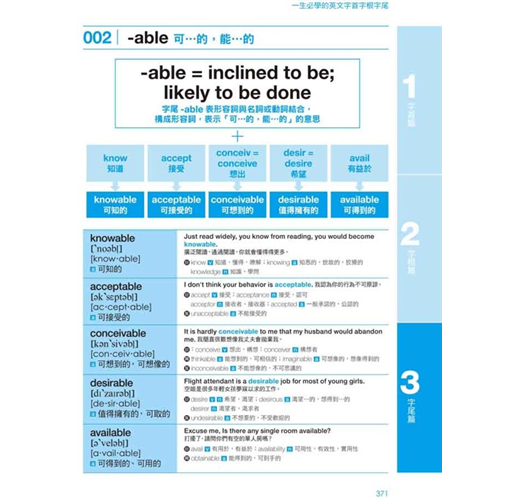本書特色之一就是將每個字首、字根、字尾都附上詳細的使用說明與意
