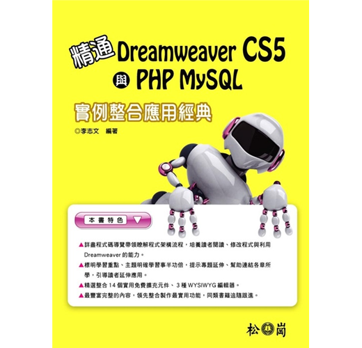 全書以經典的應用實例貫穿,有詳盡的伺服器行為程式碼導覽,範例整合14個免費開放的擴充元件,除利用來產生基本程式架構以增加效率、降低製作門檻外,亦帶領閱讀程式架構流程與修改程式以符合需求,使讀者更容易瞭解在Dreamweaver中所做的動作實際上是如何達成,培養讀者閱讀、修改程式與利用Dreamweaver的能力。