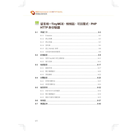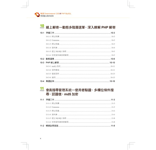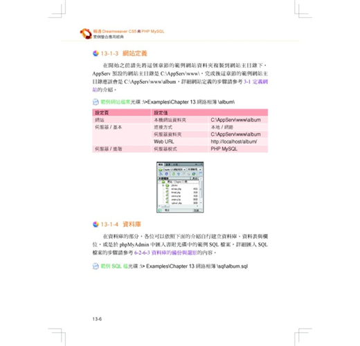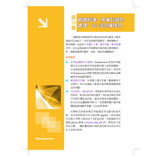 這章節的主要目的就是要讓各位瞭解如何運用Dreamweaver 圖形介面建立MySQL 資料庫連線、資料集查詢、新增記錄、更新記錄、刪除記錄、分頁選單等動作,及常見的問題如中文亂碼的處理等。