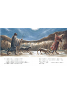 農夫到山谷去尋找,沿著河床找,在蘆葦叢中找,在岩石後和急流中尋找。他徘徊在山坡上,穿過黑暗和交錯的森林,那裡是萬物開始生長的地方,然後又繞出去,沿著牛隻走過的泥濘路徑去找。他在那比他還高長的茅草中找,爬上陡峭的高山,攀著高聳穿入天際的岩石中尋找。他一直呼叫,希望那隻小牛會聽到,他覺得很孤單,他的叫聲在山壁間迴盪。河流在山谷底下轟隆隆流過。