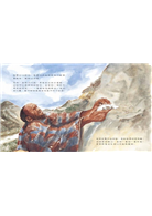 他攀上小峽谷,他想也許那隻小牛為了躲避暴風雨,會躲在山谷間。就在他停下來的地方,他看到在大岩石的邊緣,近得可以摸得到的地方。出現一個很不尋常的景象—一個老鷹的巢,一隻非常小,剛由鳥殼中孵出一兩天的小鳥,因為可怕的暴風雨,從巢中滾了出來。