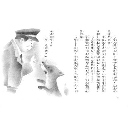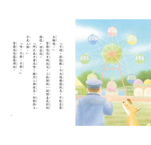 一隻小狐狸指著高高的天空說:「請讓我坐那個!」