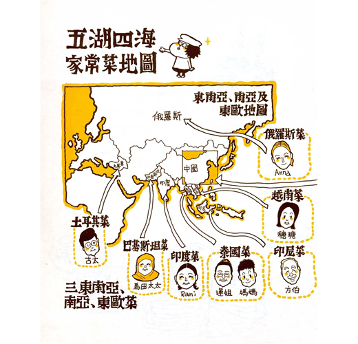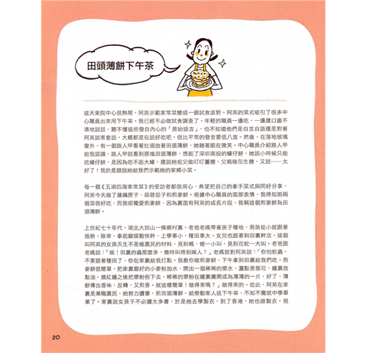 作者麥圓本定期訪問東華三院「天廚」鄰舍互助計劃的參與者──居於天水圍的主婦,記錄她們烹調家鄉菜的過程、心得和味道,由漫畫家Stella So繪出食譜,每篇配有與與吃食相關的冷知識。