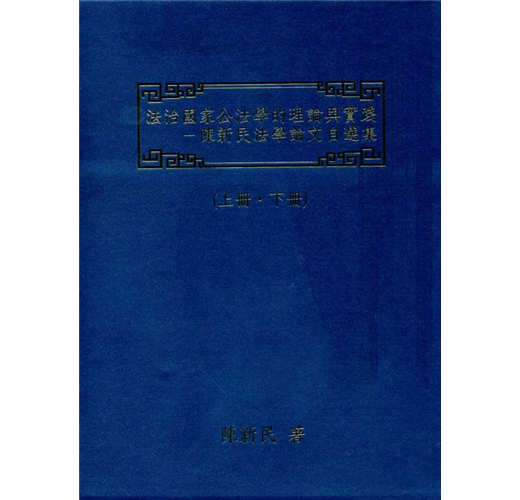 法治國家公法學的理論與實踐─陳新民法學論文自選集(上冊‧下冊),這些論文曾分散在各種學術刊物,大多曾收錄在作者歷年出版的專論之中。這些專論部分已絕版。為了省去讀者搜尋之不便,作者特仿效藝文界有所謂的「自選集」之類的出版類型,以逐年選擇三十篇自己較為滿意者,集為上、下兩冊。