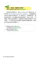 3.沒想到一本英文學習書,也可以寫得像引人入勝的小說一樣,真令人意想不到。運用文中的句型,真的能擺脫說不出英文的尷尬場面,曾經在美國生活過一年的我,也曾為了英文傷透腦筋,但藉由這本書,讓我漸漸恢復對英文的信心,也敢運用英文來造句、對話。(金均熙,34歲,主婦)